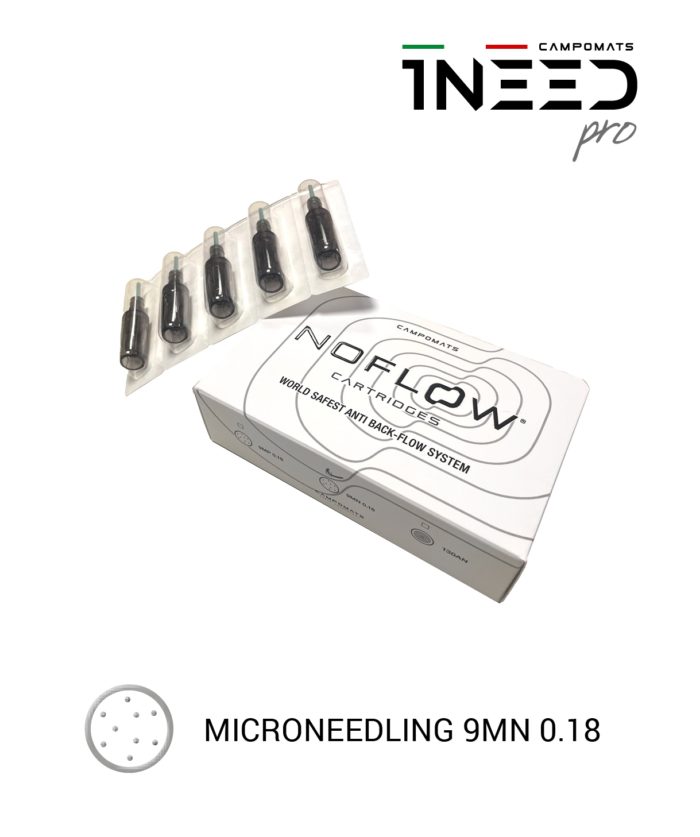 Cette cartouche stérile à 9 micro-aiguilles (0,18 mm) permet un travail en profondeur jusqu’à 2,5 mm, idéal pour stimuler la régénération cutanée et améliorer l’efficacité des actifs.