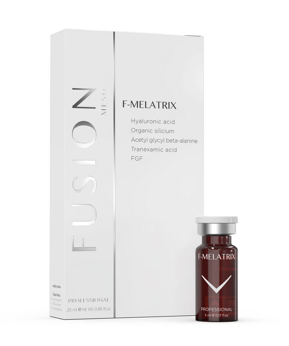F-MELATRIX est un sérum professionnel réparateur intensif, conçu pour favoriser la régénération tissulaire et améliorer la qualité de la peau marquée par des cicatrices ou vergetures. Sa formule associe silicium organique, acétyl glycyl bêta-alanine, acide hyaluronique, acide tranexamique et facteur de croissance FGF pour stimuler la production de collagène et restaurer la structure cutanée. Utilisé en microneedling, il améliore l’élasticité, l’uniformité et la résistance de la peau.