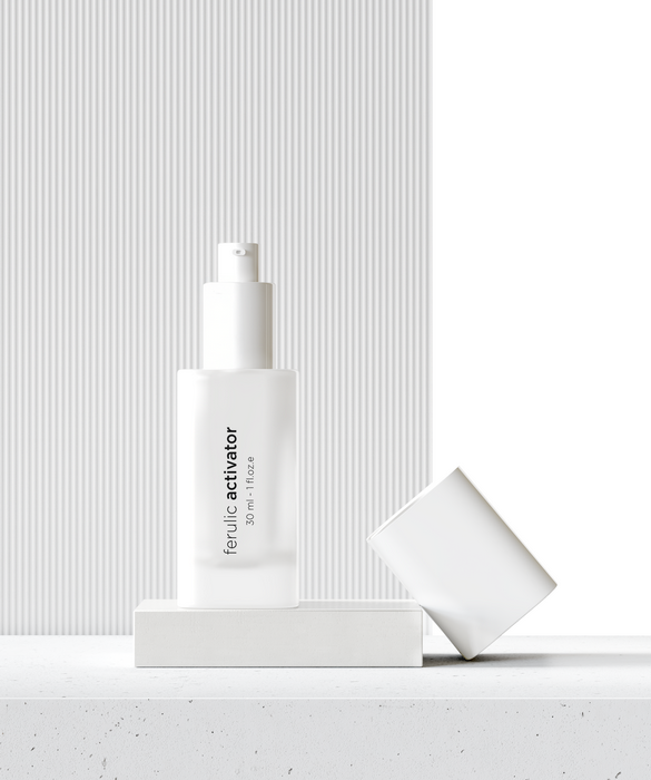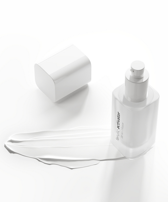 FERULIC ACTIVATOR est un sérum rénovateur quotidien formulé pour lisser, hydrater et homogénéiser le teint. Sa synergie de glycérine végétale, de peptides biomimétiques et d’acides doux (PHA/AHA) stimule le renouvellement cellulaire tout en respectant la barrière cutanée. La texture fluide pénètre rapidement sans effet gras et laisse une sensation de confort immédiat. Jour après jour, la peau gagne en douceur, en éclat et en uniformité, avec un grain affiné et plus régulier.