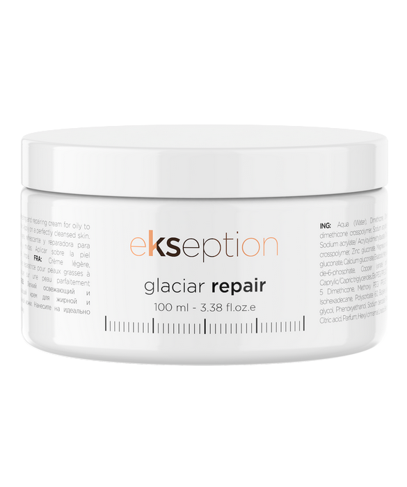 GLACIAR REPAIR est une crème réparatrice pensée pour apaiser, rééquilibrer et réconforter les peaux mixtes, grasses ou sensibilisées. Sa texture fraîche inspire immédiatement la pureté et le soin, tandis que la formule réunit des actifs hautement performants pour restaurer le confort cutané tout en soutenant la barrière protectrice naturelle. Ce soin ciblé accompagne autant les routines professionnelles que l’entretien quotidien à domicile, avec une action réparatrice et équilibrante qui se prolonge dans le temps.