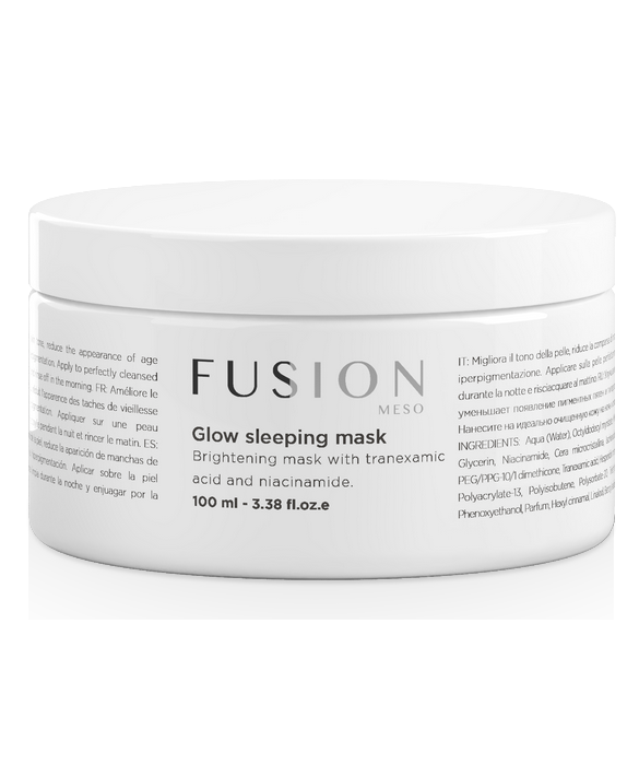 GLOW SLEEPING MASK est un masque de nuit correcteur conçu pour unifier visiblement le teint et raviver l’éclat au réveil. Sa texture douce et enveloppante diffuse progressivement ses actifs pendant la nuit pour cibler les taches, apaiser les sensibilités et booster l’hydratation. Grâce à sa combinaison d’acides doux et d’actifs illuminateurs, il révèle un teint plus lisse, plus lumineux et plus homogène dès les premières utilisations.