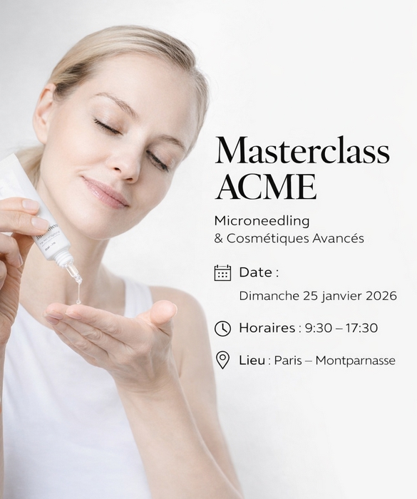 👉 Réservez votre place pour la Masterclass ACME — Microneedling & Cosmétiques Avancés.