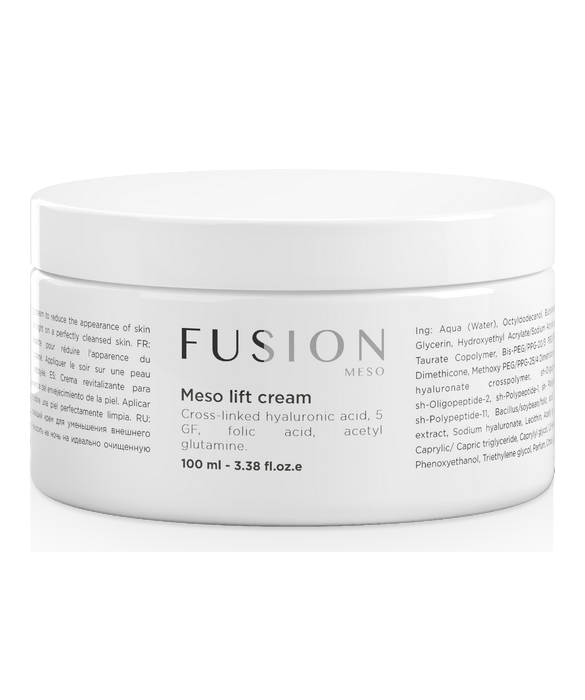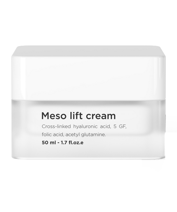 MESO-LIFT CREAM est une crÚme formulée avec des principes actifs issus de la mésothérapie et des produits de comblement dermique pour une réduction efficace du relùchement cutané et des rides. La crÚme redéfinit les contours du visage et lui donne un aspect plus jeune et plus ferme.